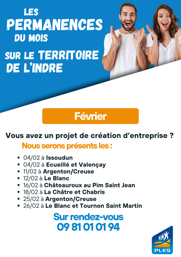 Voici les dates de nos prochaines permanences sur le territoire de l’Indre pour le mois de Février 2026.
